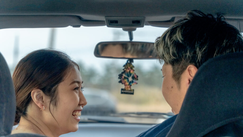 「僕たち、車が本当に好きなんです。週末はいつも二人でドライブしてて。だから前撮りも、愛車と一緒に撮りたいんです」