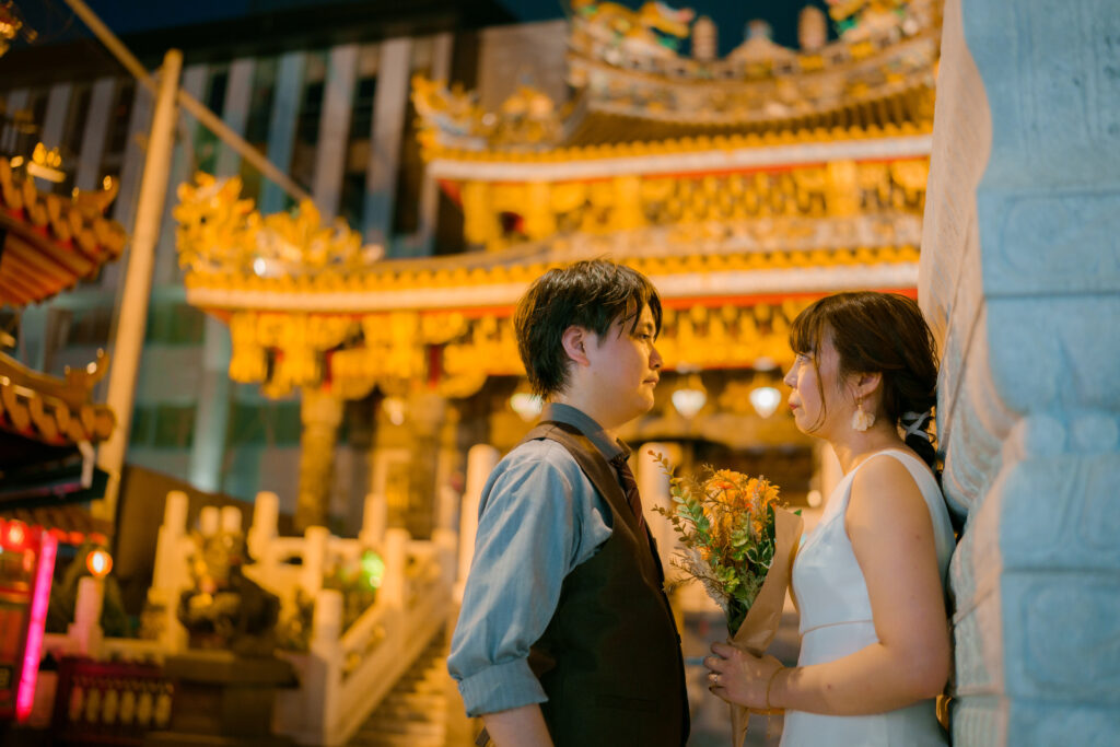 これが今回のお二人からのご要望でした。特に新婦様は「海や自然も素敵だけど、私たちは街中でワイワイするのが好きだから、そういう雰囲気を残したい」とのこと。二人とも中華街が大好きで、デートでもよく訪れる場所だそうです。