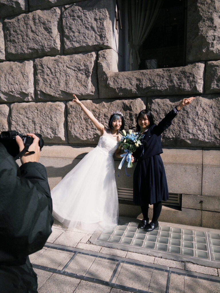 公会堂周辺では、建物のクラシカルな雰囲気や歴史を感じられる背景・構図を意識し、「公会堂らしさ」がしっかり伝わるカットを大切にしています。